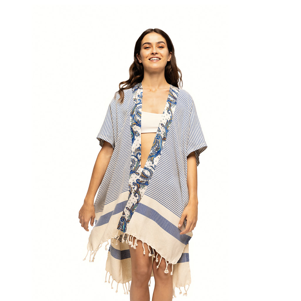 Lisa on Jul 26, 2023Amazing quality, feels so soft and comfy. I love wearing it at the beach or pool. The silk border gives it a luxury feel and looks very chic. Very high quality. Service and delivery was fast and professional. Already thinking about getting another one, with different color border.